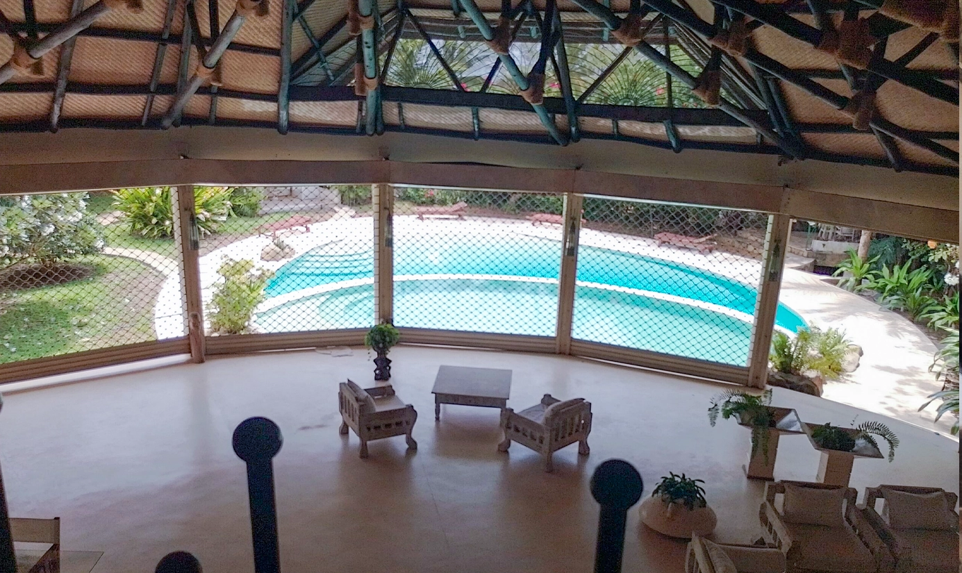 Step inside to 4 master ensuite bedrooms with walk-in closets, plus 2 guest rooms ideal for family or visitors. A grand staircase leads to the upper deck lounge, home office, and sunlit balconies with panoramic sea views. Outdoors, enjoy a sleek swimming pool, multiple gazebos, landscaped gardens, and a secure fenced beachfront section with private access to the Indian Ocean. Every detail is crafted for leisure and security, from air conditioning and a 100,000-litre underground water tank to a reliable backup generator, ample parking, and staff quarters.