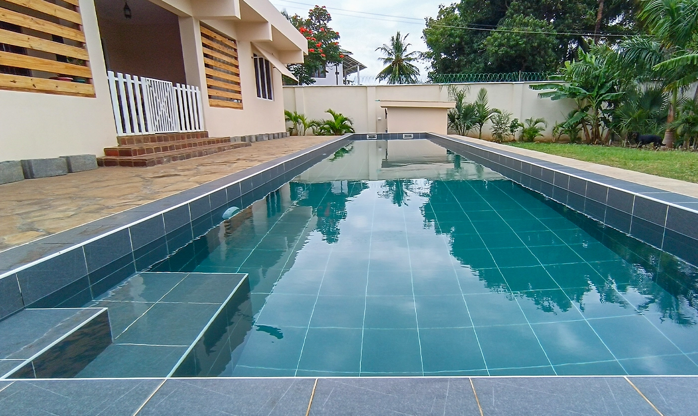 This luxury Diani villa is built for both elegance and efficiency, featuring 3 en-suite bedrooms, an open-plan lounge and kitchen, and a private 15m lap pool with AI robotic cleaning technology. The home integrates eco-smart systems including a rainwater harvesting setup from a 250sqm flat roof, a 70,000L underground water tank with D&S pump, and 4-layer Italian Mapei waterproofing with thermal insulation for cooler interiors. Every detail, from high-end finishes to sustainable construction, is designed to provide a secure, durable, and luxurious coastal lifestyle.